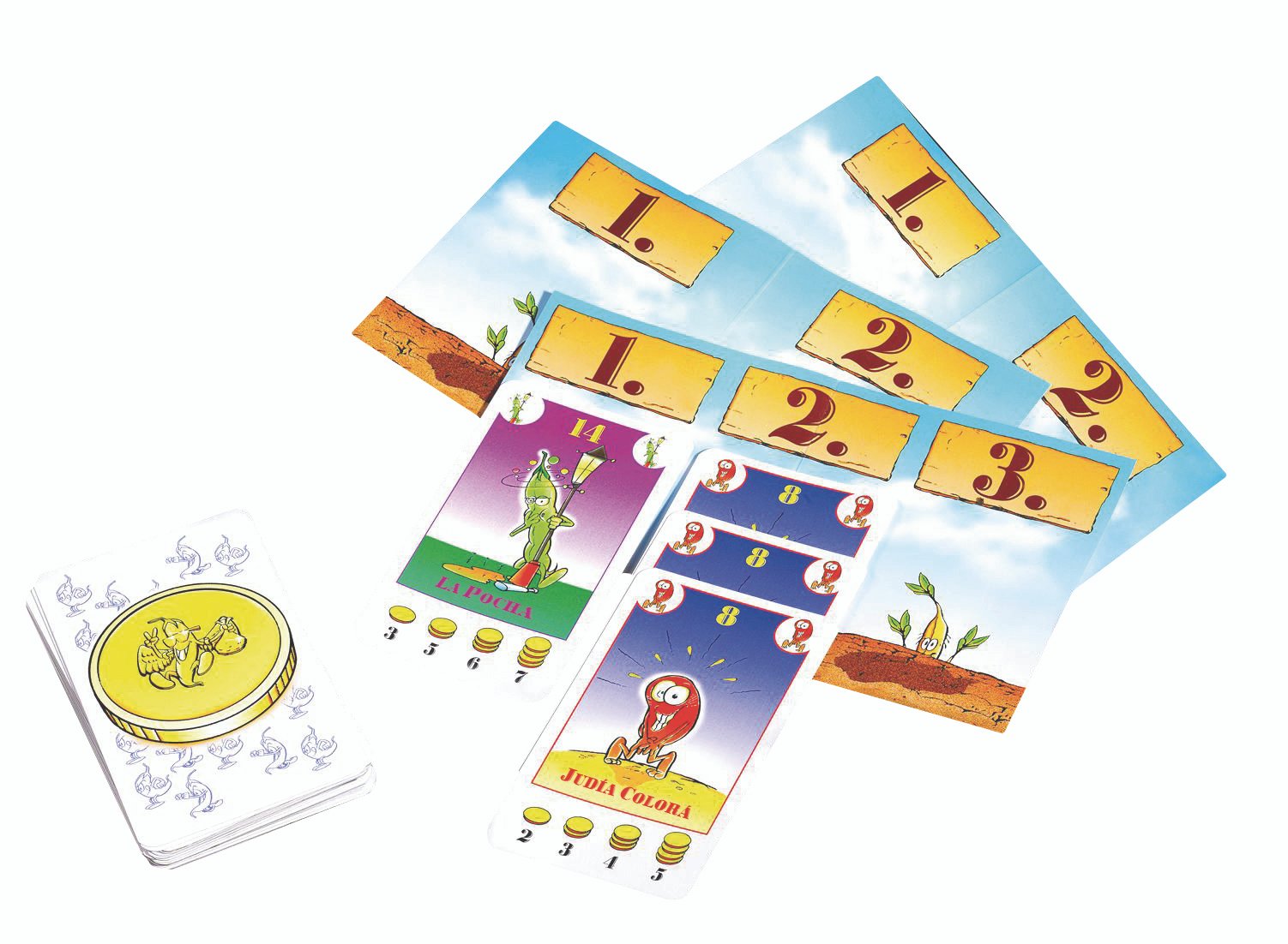 En Bohnanza los jugadores deben plantar sus campos, negociar con otros jugadores y vender las judías para ganar monedas. Esto podría ser fácil, si no fuera porque sólo se puede ir plantando por orden y por tipos de judías y no siempre se consigue.